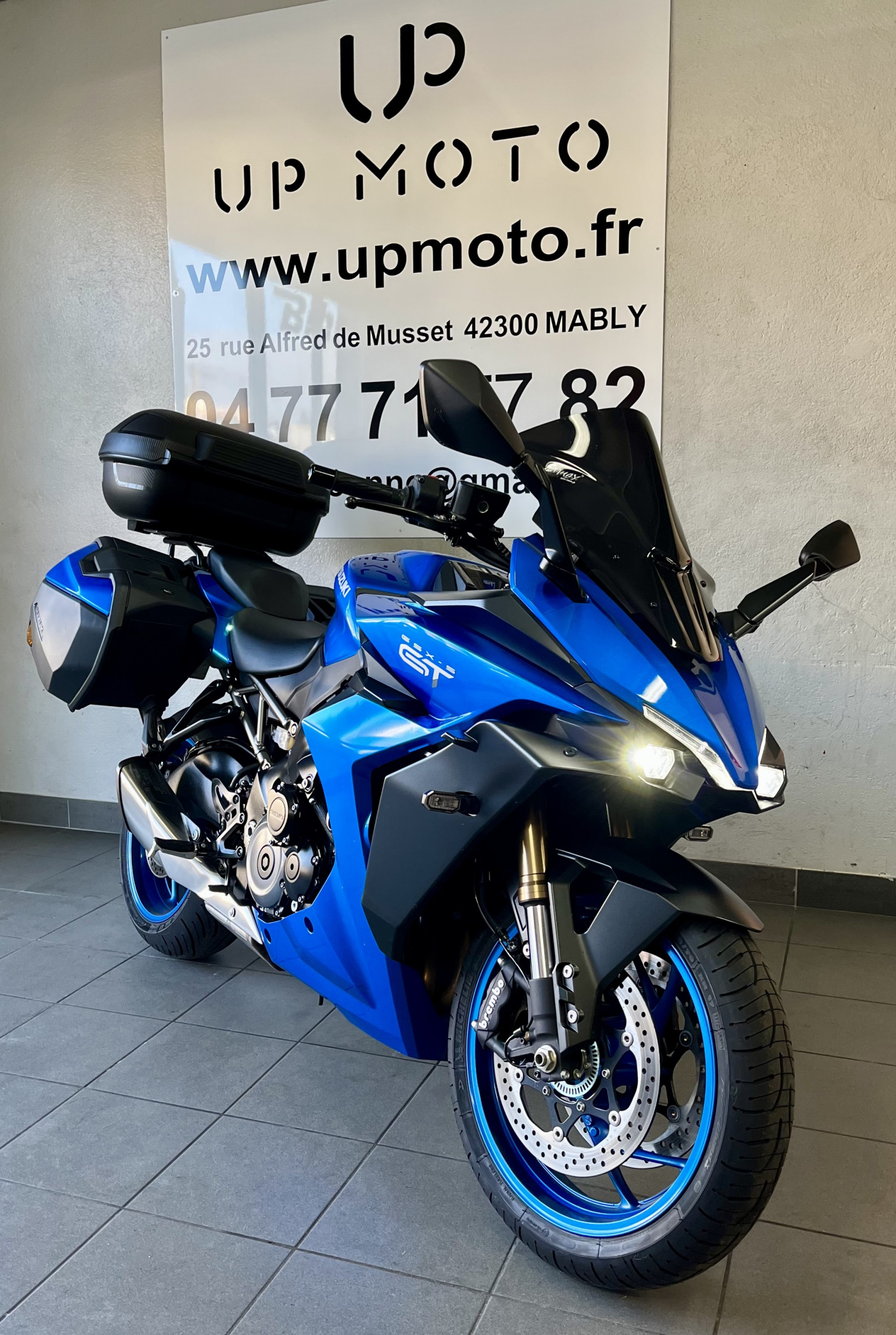 UPMOTO, votre concession SUZUKI à Roanne dans la Loire vous propose cette magnifique Suzuki GSX S 1000 GT en colorie Metallic Triton Blue ( YSF ) de 2022 avec 7757 kilomètres.