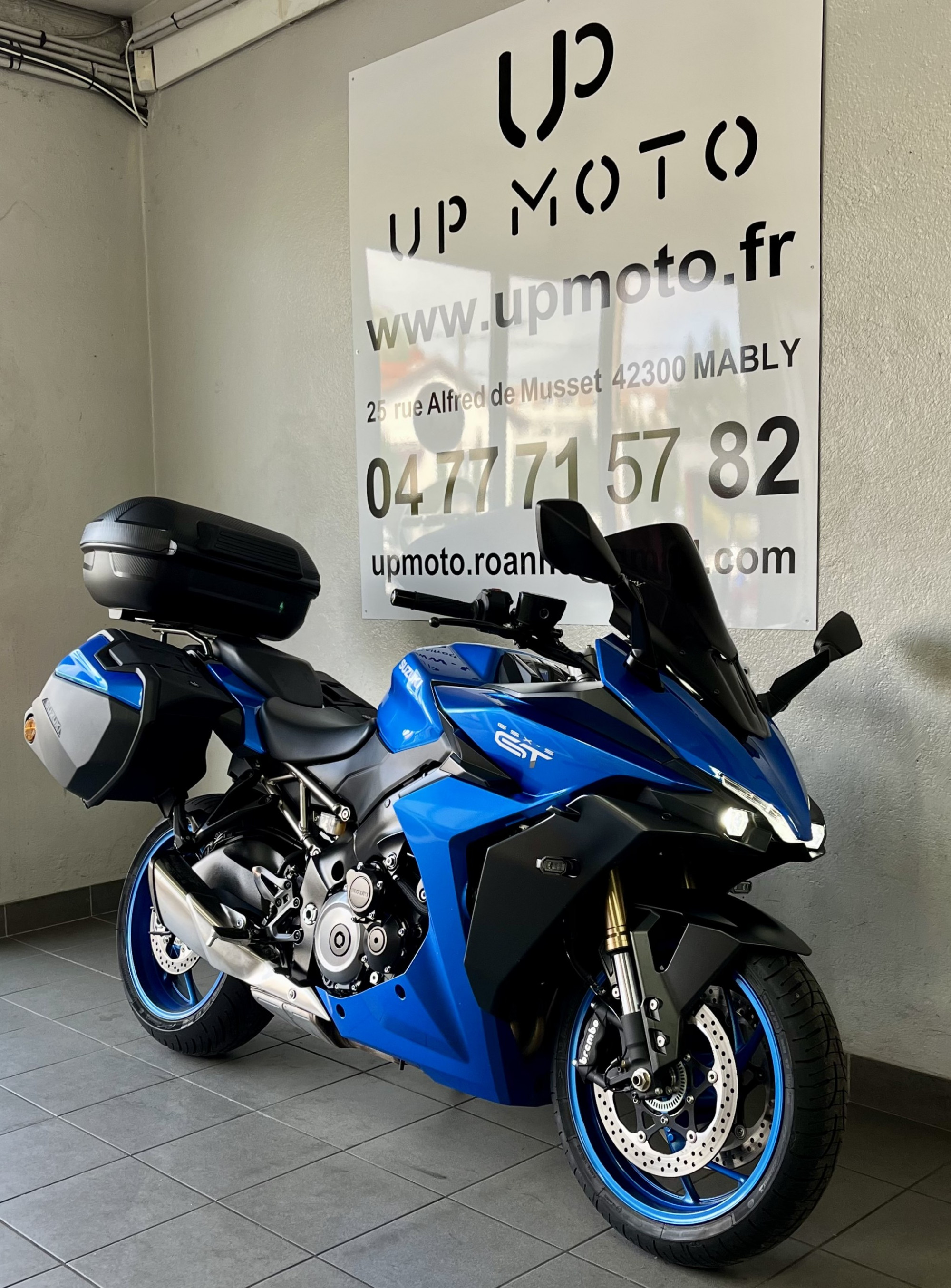 UPMOTO, votre concession SUZUKI à Roanne dans la Loire vous propose cette magnifique Suzuki GSX S 1000 GT en colorie Metallic Triton Blue ( YSF ) de 2022 avec 7757 kilomètres.